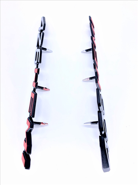 Reproduction 426 Hemi Shaker hood scoop emblem are sold as a matched set. The left emblem is thicker at the 4 and tapers thinner to the I and the right emblem is thicker at the I and tapers thinner to the 4. They measure 9-3/8" long by 7/8' tall on the 426 and 3/4" tall on the HEMI. The numbers are a brushed finish and the Hemi letters are a darker Hemi orange. Each emblem has 3 mounting studs and include the mounting hardware.