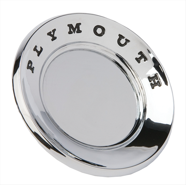 This is the round emblem that fits in the center of the header panel. Made of Diecast features a brilliant chrome plated finish with O.E. part numbers and markings. The original was made of injection molded plastic.